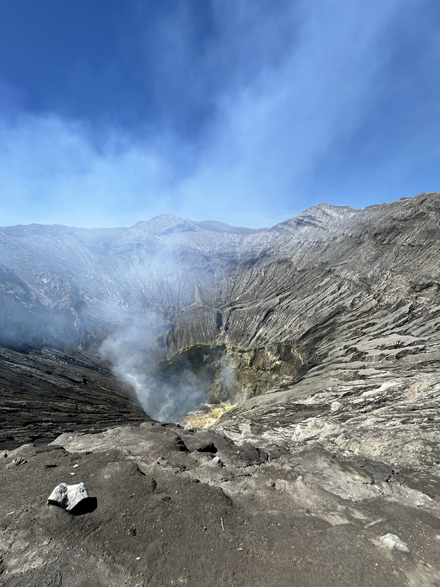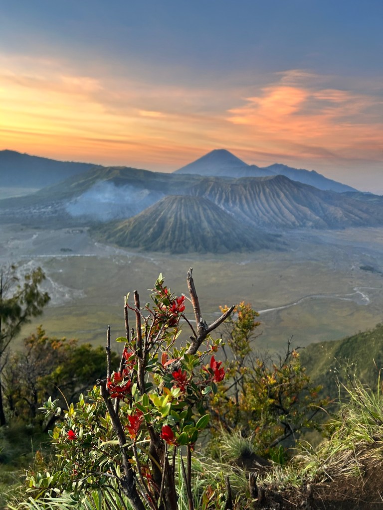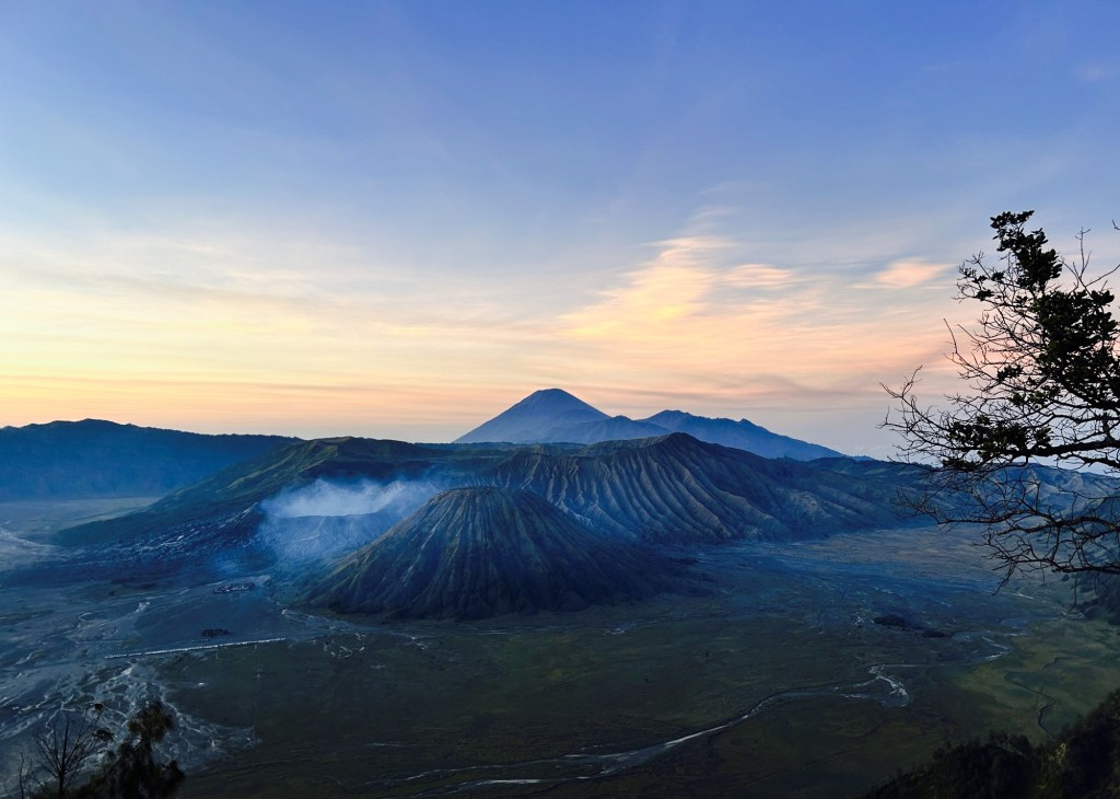 Eens de zon begint op te komen is het een prachtig zicht, je ziet de vulkaan tevoorschijn komen met op de achtergrond de Semeru-vulkaan die we eerder ook al vanuit Tempuk Sewu zagen.