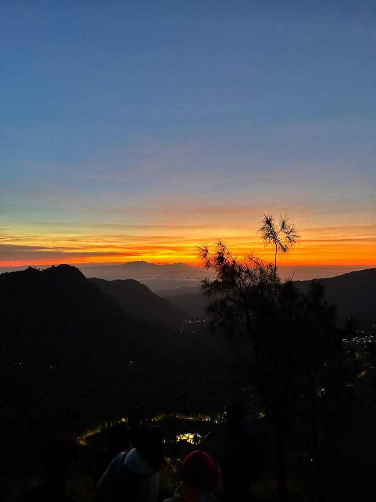 Om 3 uur zijn we al aan de basis chocomelk aan het drinken om nadien, rond 4u te vertrekken naar het uitzichtpunt voor de zonsopkomst. Dit is een kleine 20 minuutjes wandelen maar om een mooie plek te hebben moet je op tijd vertrekken. De zon begint rond 4u30 op te komen (allemaal afhankelijk van wanneer je er precies bent natuurlijk) maar toch sta je al ruim op voorhand op het uitkijkpunt, de reden hiervoor? Je bent opnieuw niet alleen, heel wat mensen staan rondom je en wanneer je een goede plek wilt hebben moet je zo vroeg klaarstaan.