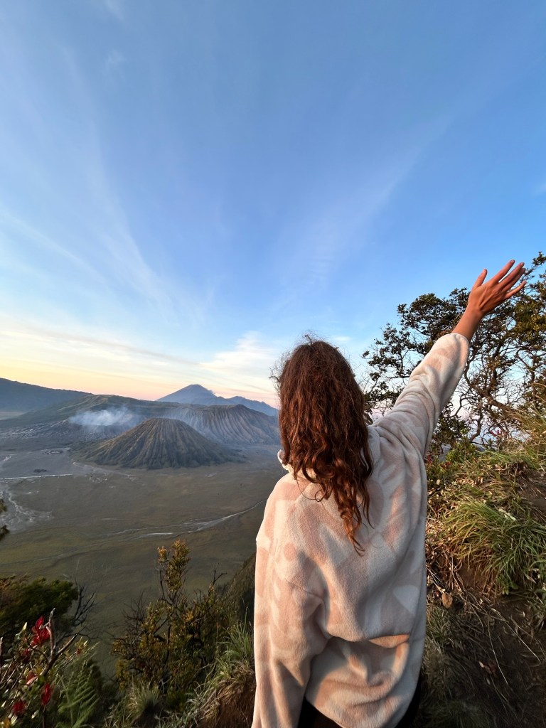 Niet te geloven dat mijn ouders mij verhalen vertelden waarbij ze ook Bromo bezochten maar toen helemaal alleen waren, er liep iemand achter hen bijna tot boven aan de krater om een ketting te verkopen, die ze uiteindelijk – deels uit medelijden anderzijds om van de man af te zijn – gekocht hebben. Nu staan wij omringd door mensen te kijken naar de zonsopgang.
