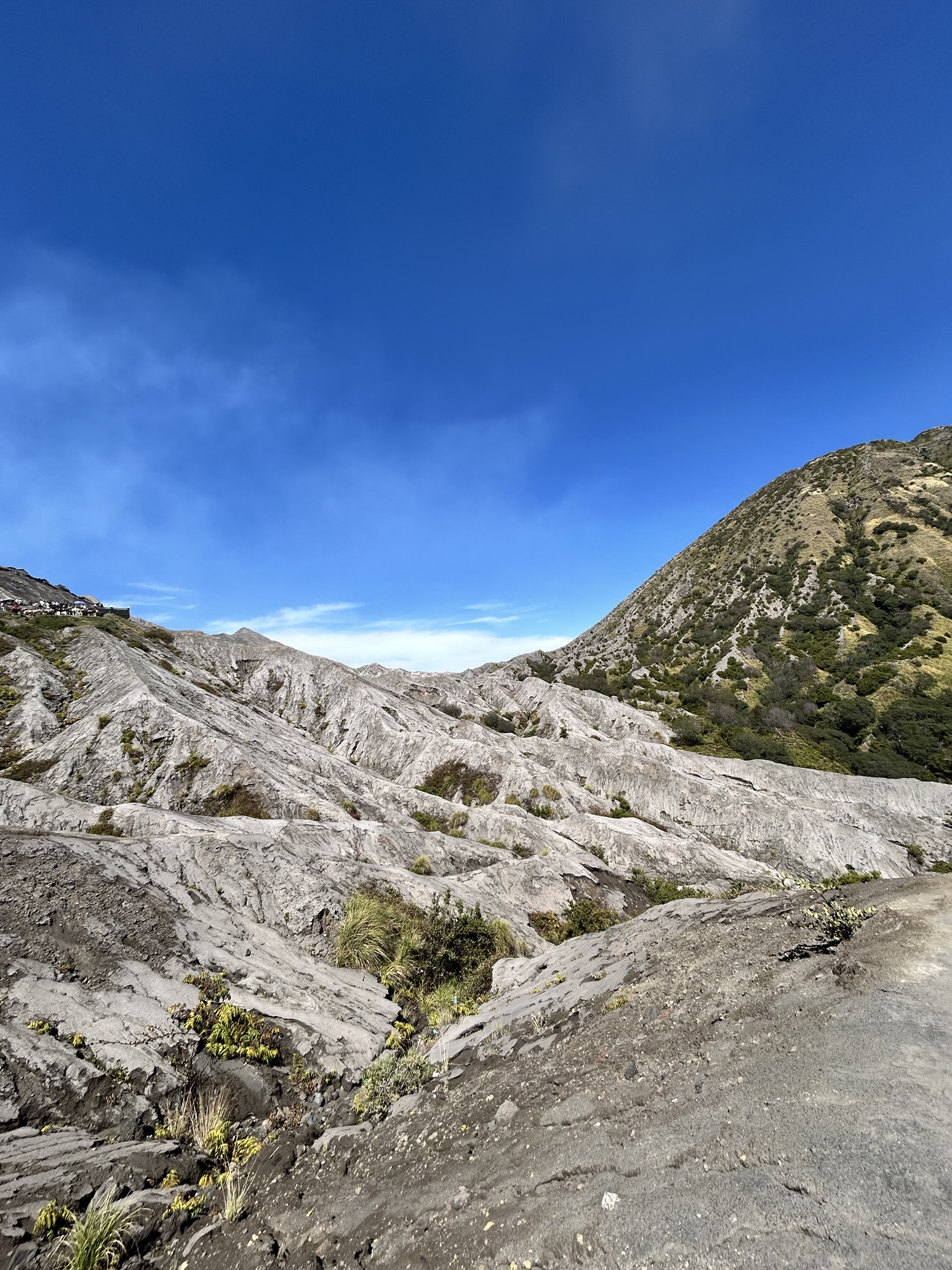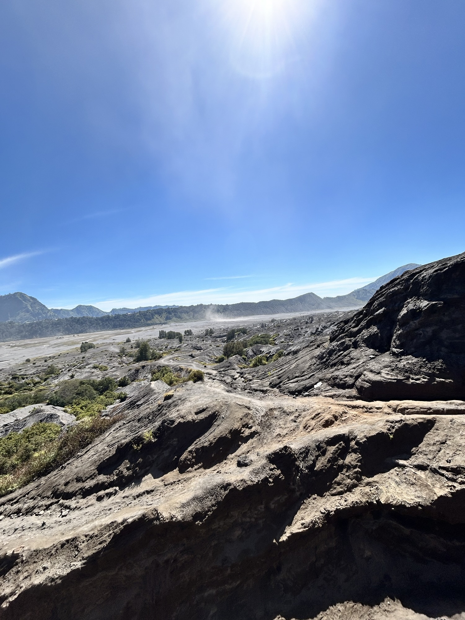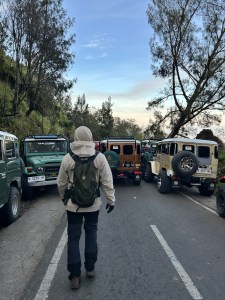 Eenmaal terug aan de jeep zetten we de tocht in richting de voet van Bromo, de tocht op zich kan zeker idyllisch en prachtig zijn, dit beeld werd bij ons echter wat verstoord door constante files door de grote hoeveelheid aan jeeps die dezelfde passage naar beneden moesten volgen, wanneer er dan nog een jeep panne krijgt begint de file.