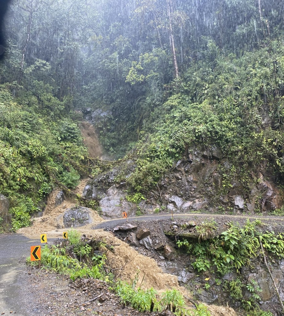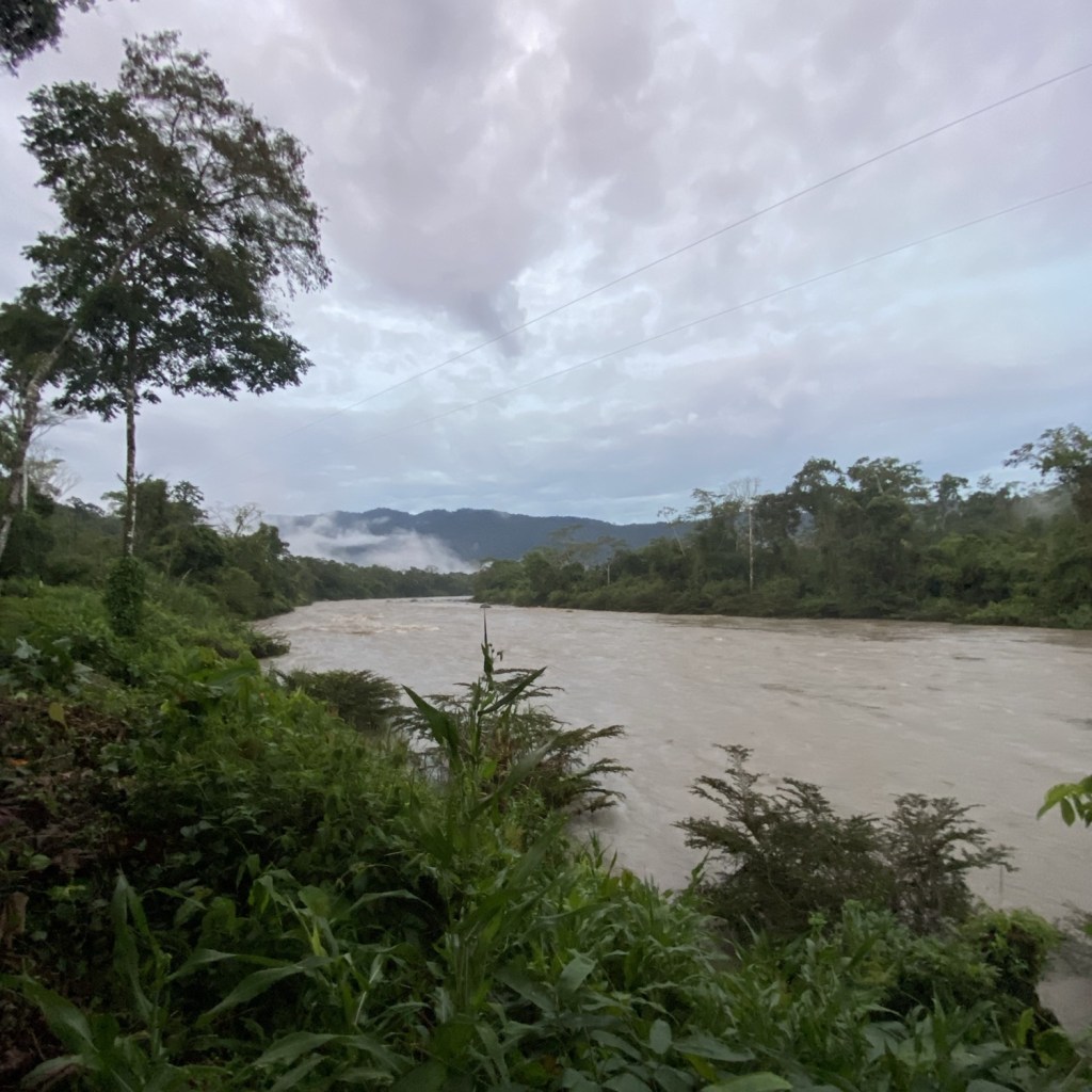 Eenmaal in het regenwoud sloeg het weer meteen om. Het werd bewolkt en regenachtig – het regenseizoen was dat jaar duidelijk vroeg begonnen. Op een bepaald moment werd de weg zelfs geblokkeerd door een soort tijdelijke waterval die ontstaan was door de hevige regen.