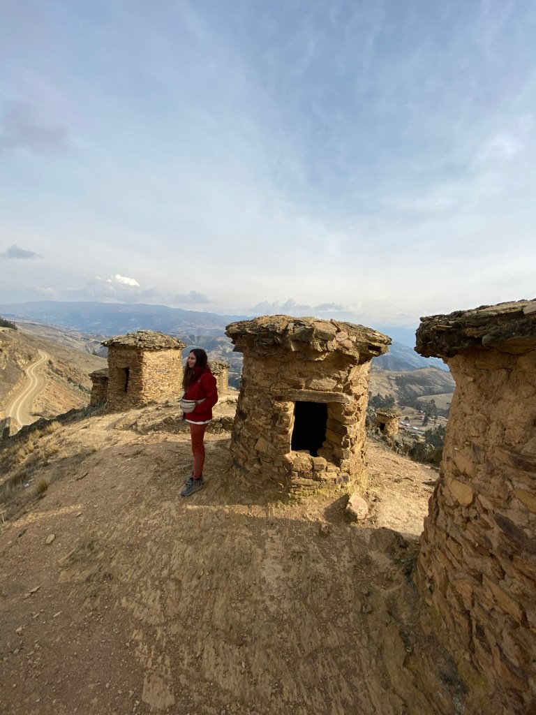Onderweg maakten we enkele stops. Eerst bezochten we een pre-Inca site, waar vooral de graftombes zijn bijgebleven. Overledenen werden hier begraven samen met waardevolle objecten zoals juwelen. Die zijn tijdens de koloniale periode grotendeels geplunderd, maar je krijgt nog steeds een goed beeld van hoe deze plek ooit gebruikt werd.